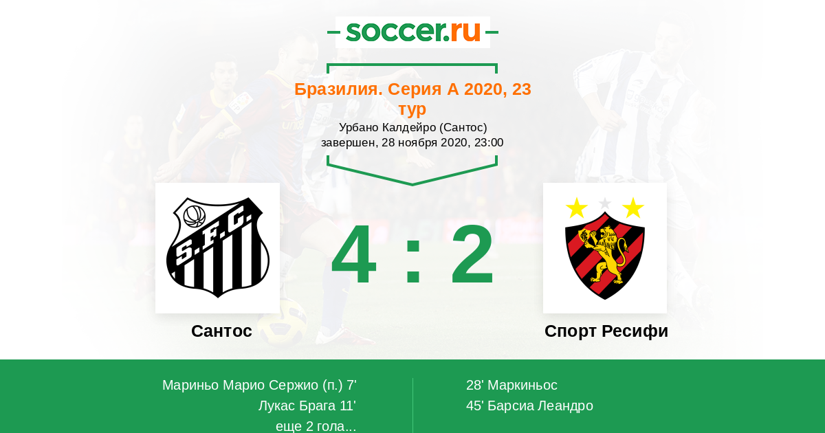 Протокол матча Сантос против Спорт Ресифи