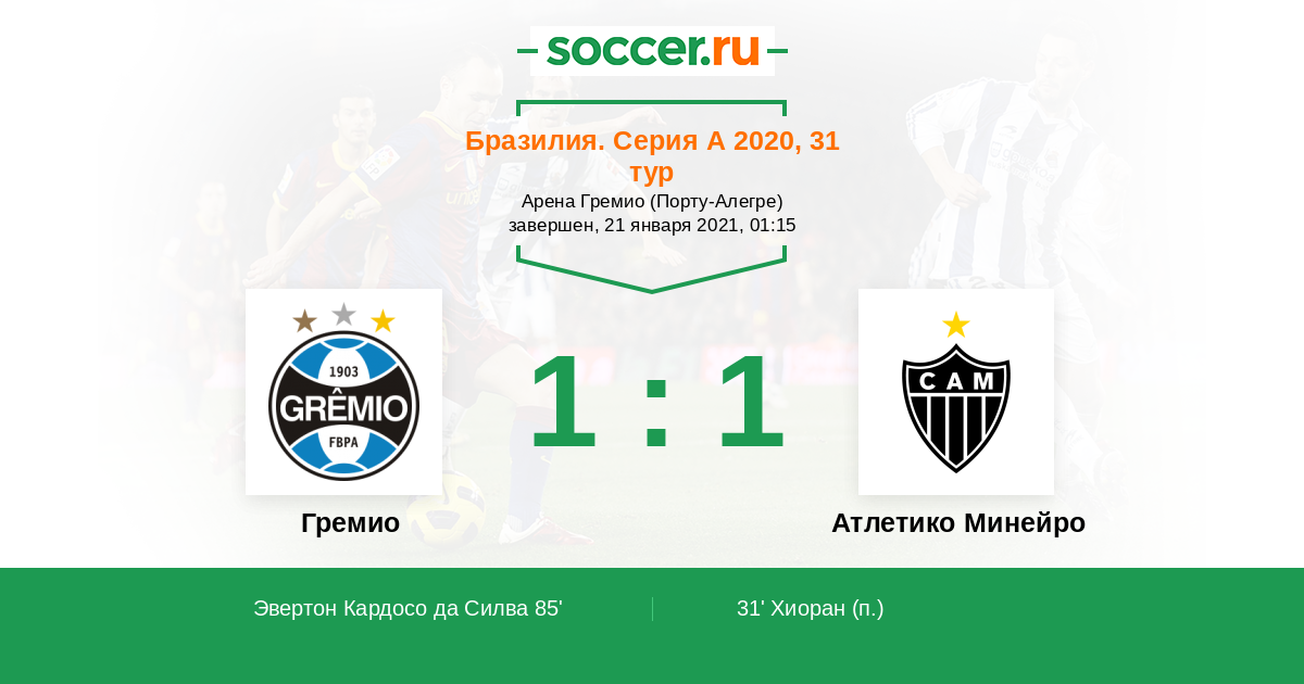 85' (1:1) Эвертон Кардосо да Силва (11)
