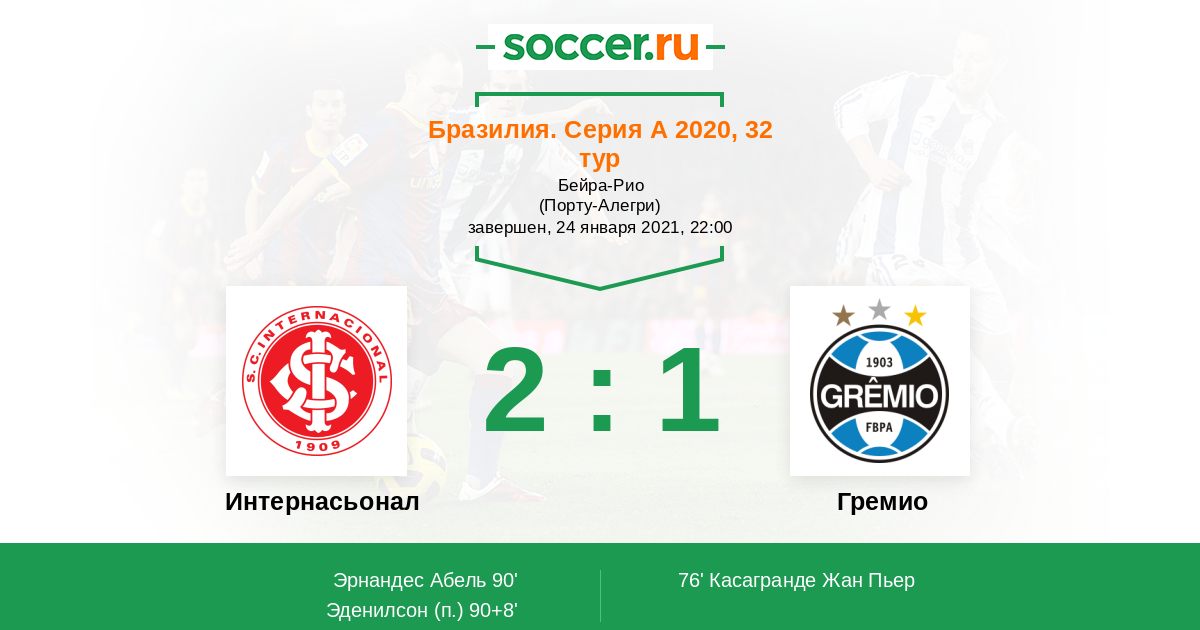 76' (0:1) Касагранде Жан Пьер (10) (Соуза Диего (29))