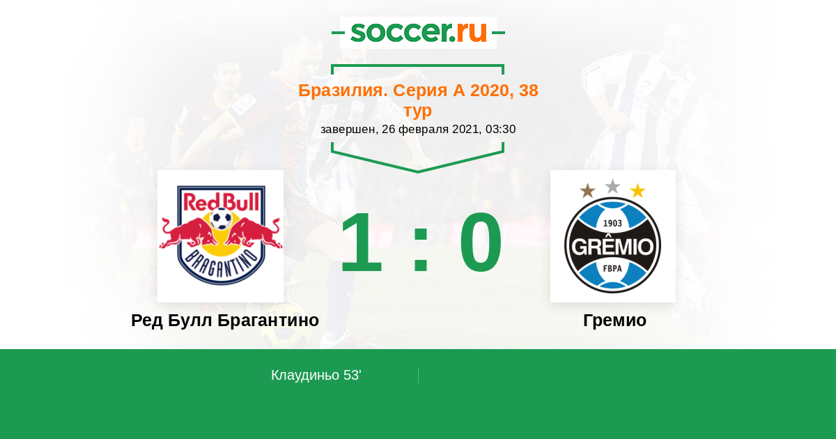 53' (1:0) Клаудиньо (10) (Итало (15))