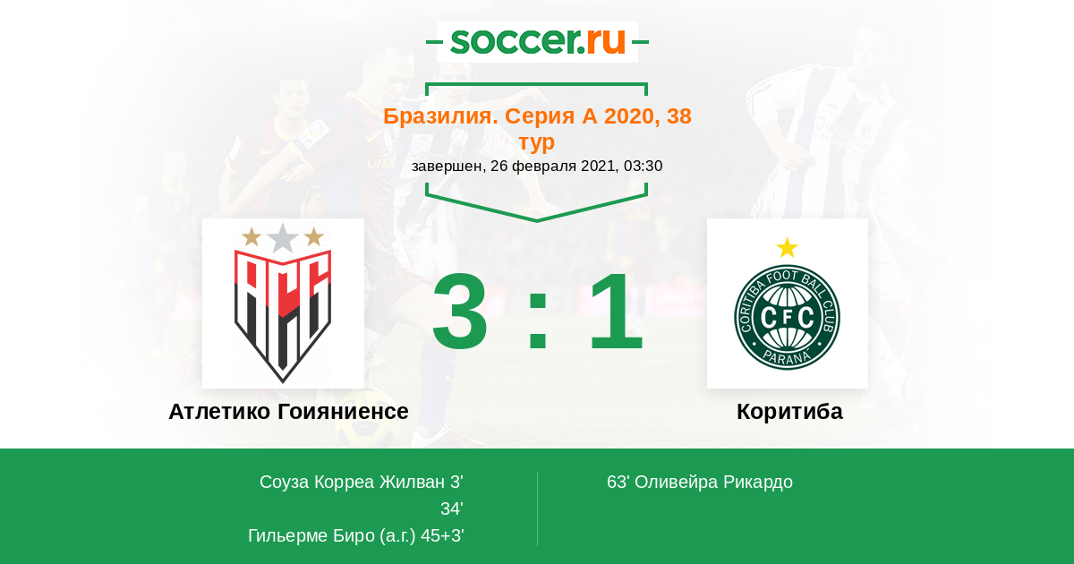 45+3' (3:0) Автогол Гильерме Биро (18)