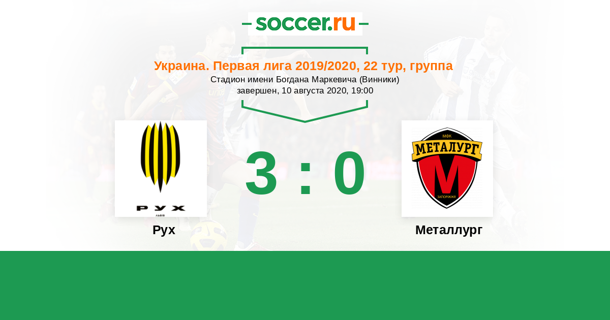 Украина. Первая лига 04.09.2019 Металлург Логотип футбольный клуб Металлург (Запорожье) 0:1 Логотип футбольный клуб Рух (Львов) Рух
