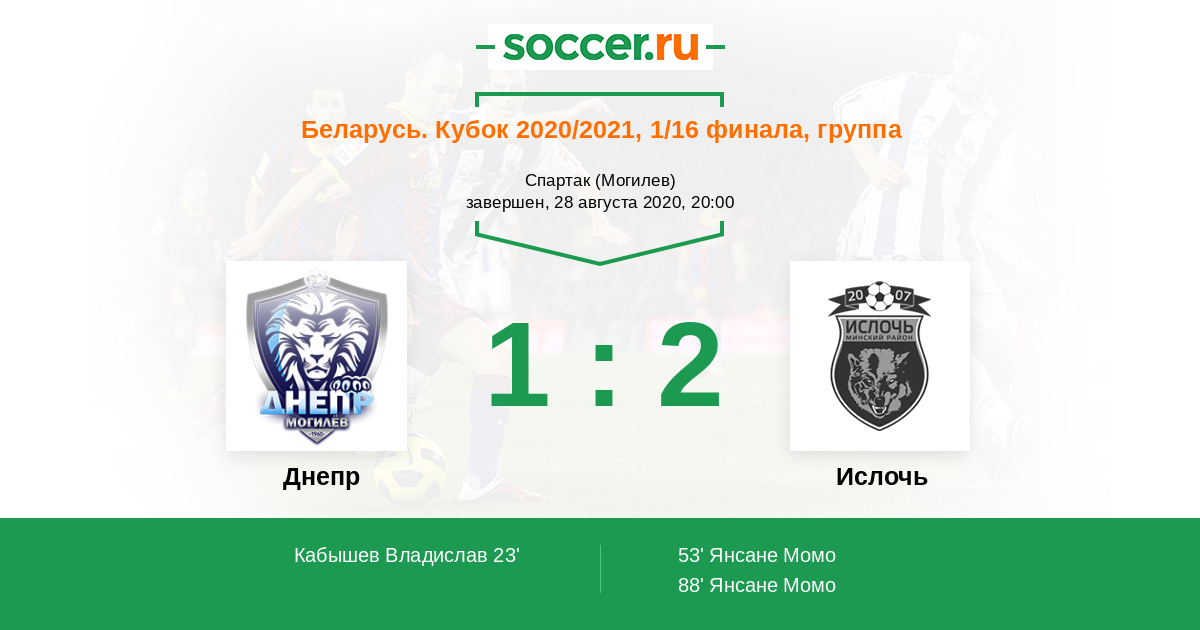 Протокол матча Днепр против Ислочь