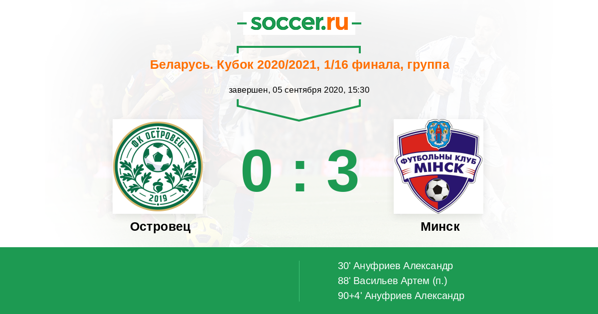 Протокол матча Островец против Минск