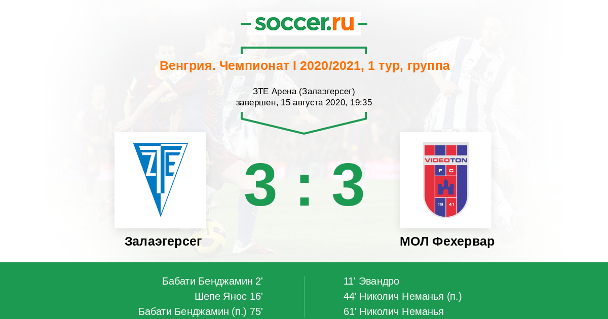 Протокол матча Залаэгерсег против МОЛ Фехервар