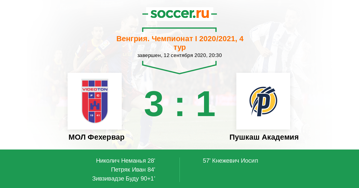 Протокол матча МОЛ Фехервар против Пушкаш Академия