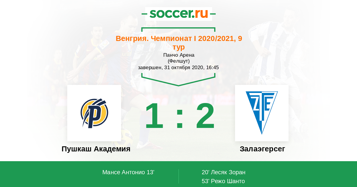 Протокол матча Пушкаш Академия против Залаэгерсег