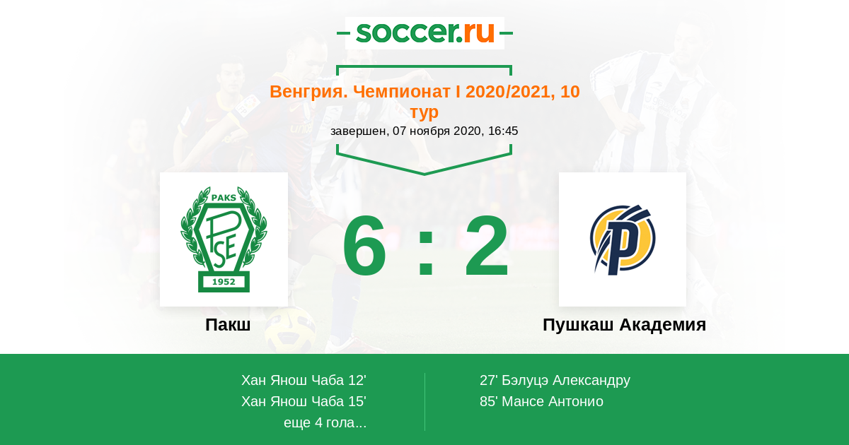 Протокол матча Пакш против Пушкаш Академия