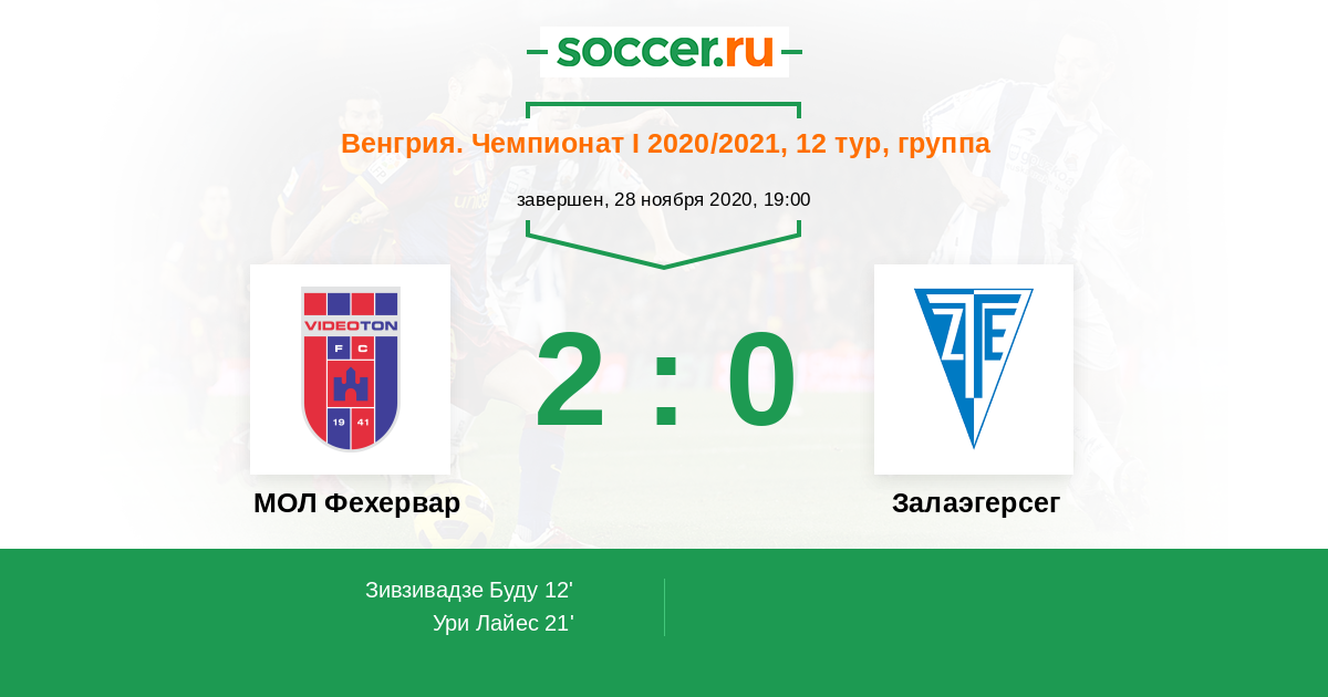 Протокол матча МОЛ Фехервар против Залаэгерсег