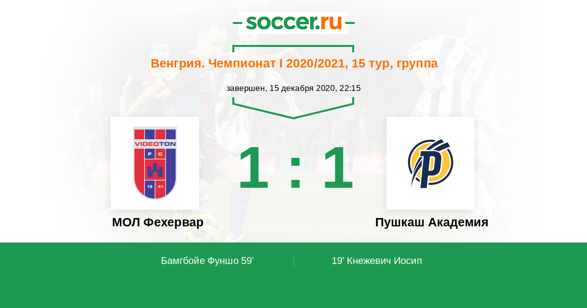 Протокол матча МОЛ Фехервар против Пушкаш Академия