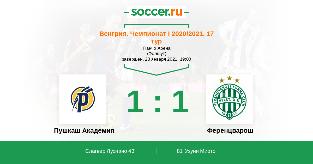 Протокол матча Пушкаш Академия против Ференцварош
