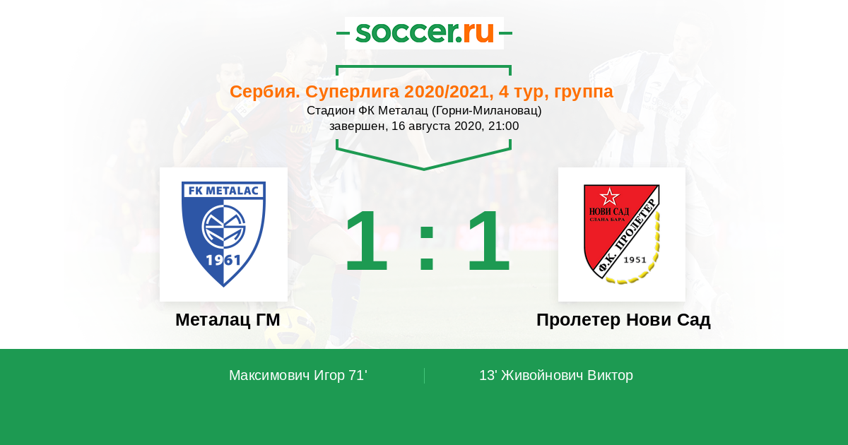 13' (0:1) Живойнович Виктор (45)