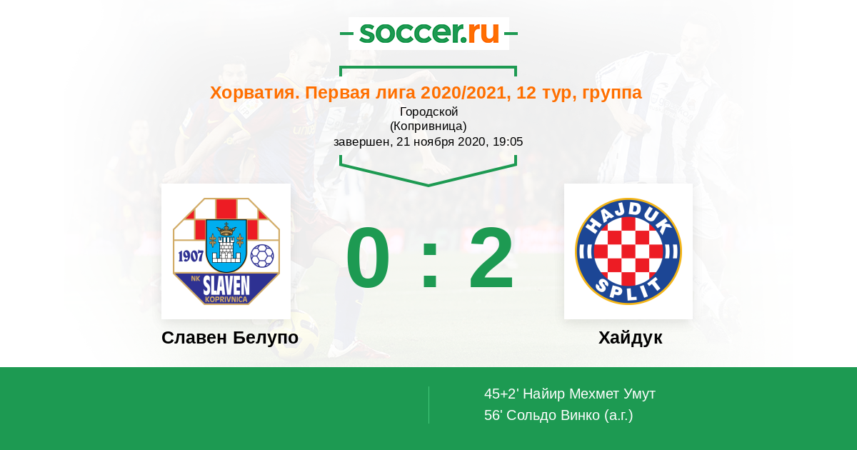 Протокол матча Славен Белупо против Хайдук