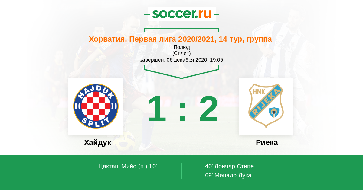 Протокол матча Хайдук против Риека