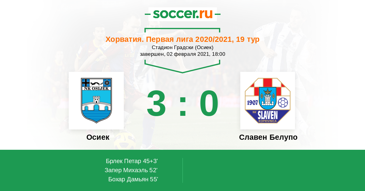 Протокол матча Осиек против Славен Белупо