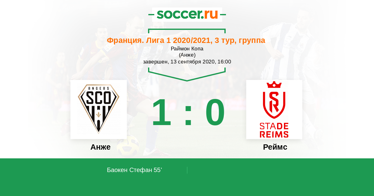 55' (1:0) Баокен Стефан (19) (Бобишон Антонен (23))