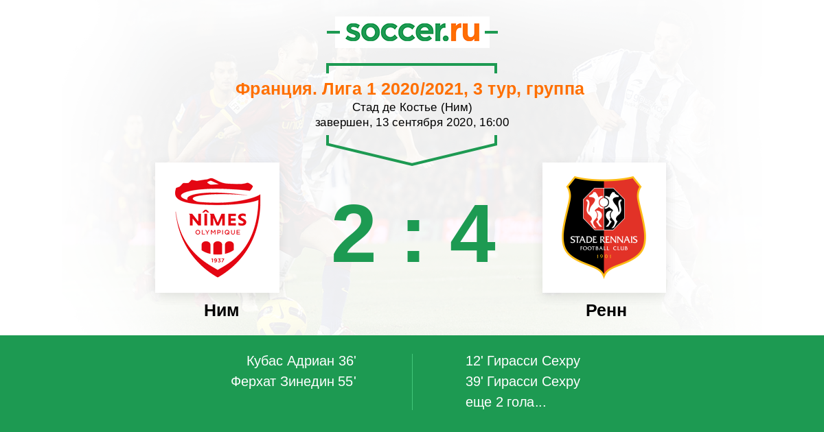 Гол90+7' (2:4) Буриго Бенжамен (14) (Дель Кастильо Ромен (22))