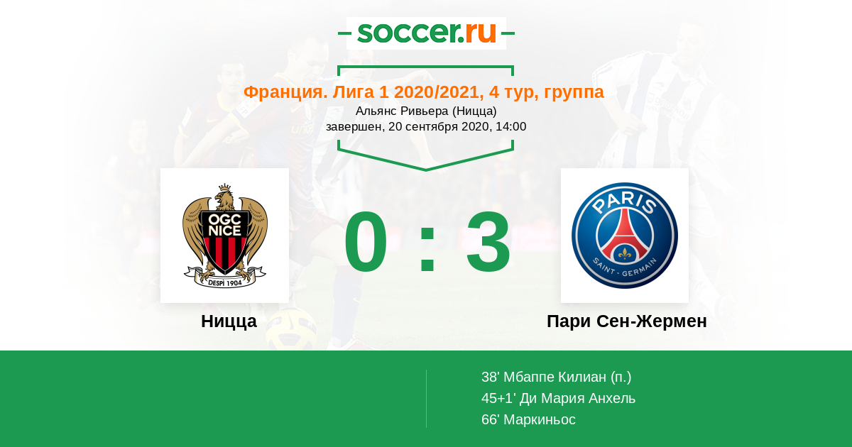Протокол матча Ницца против Пари Сен-Жермен