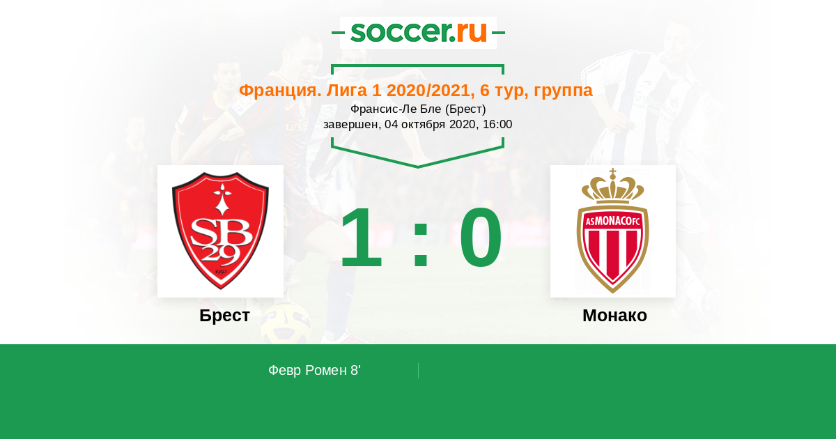 Протокол матча Брест против Монако