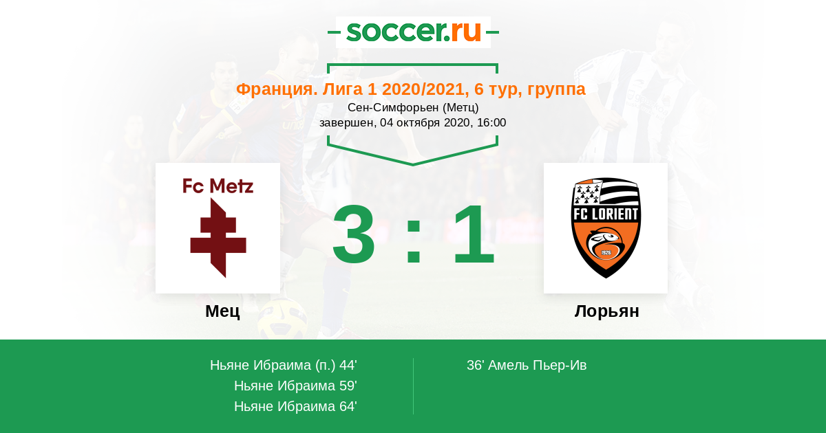 Протокол матча Мец против Лорьян