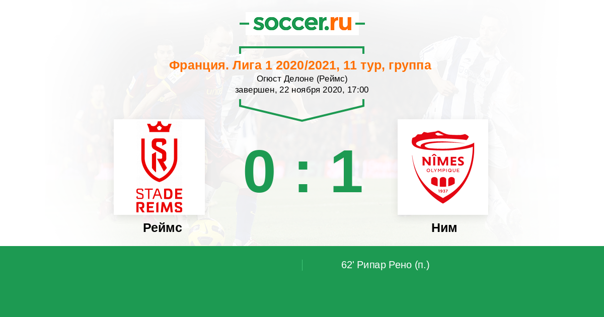 Протокол матча Реймс против Ним