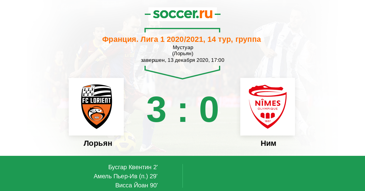 2' (1:0) Бусгар Квентин (11) (Лорьент Арман (28))