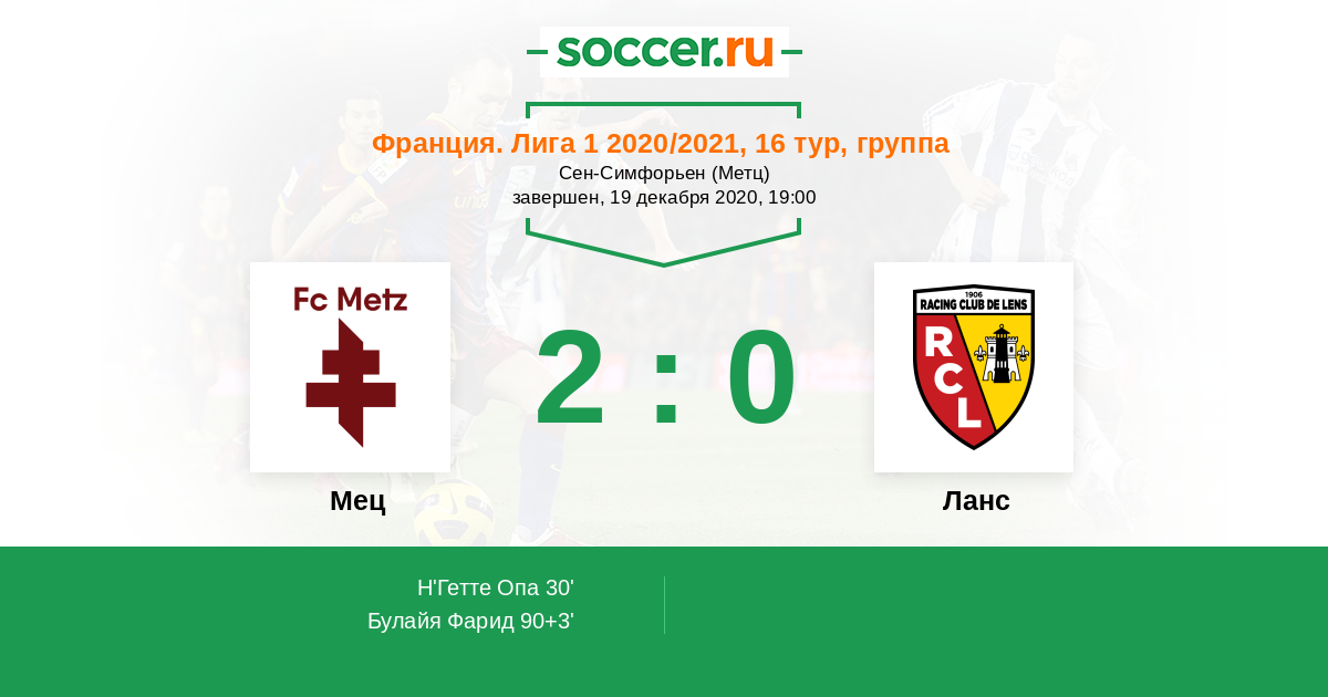 Протокол матча Мец против Ланс