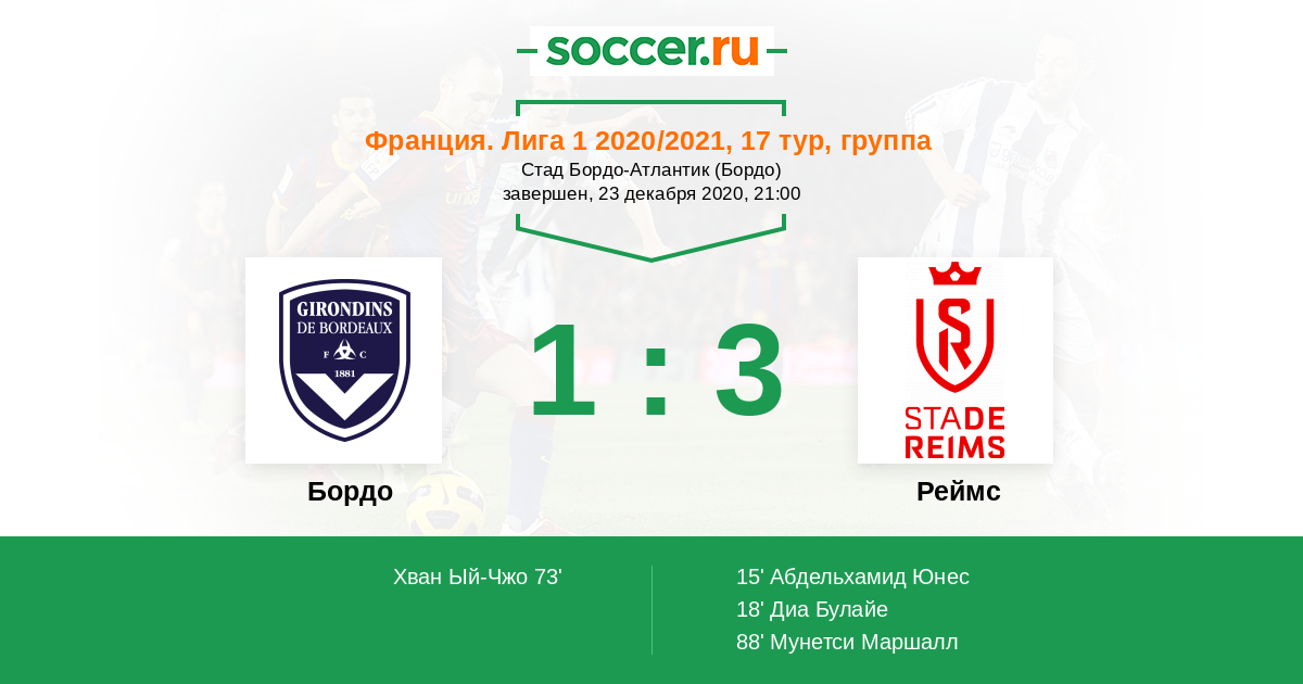 Протокол матча Бордо против Реймс