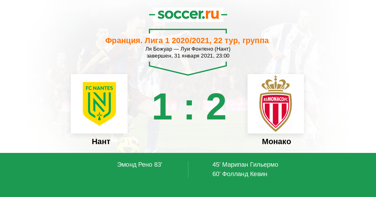 83' (1:2) Эмонд Рено (28) (Жиротто Андреи (3))