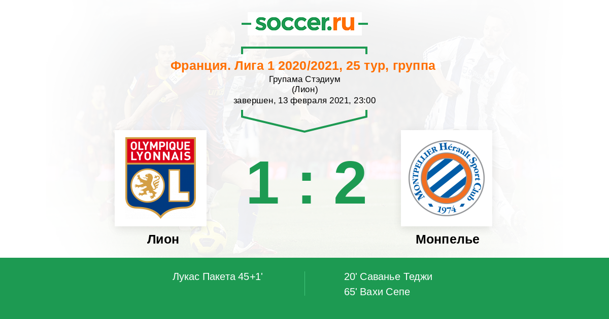 Протокол матча Лион против Монпелье