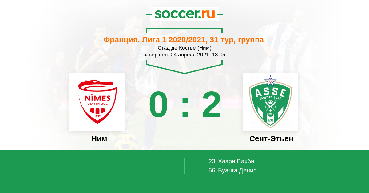 Протокол матча Ним против Сент-Этьен