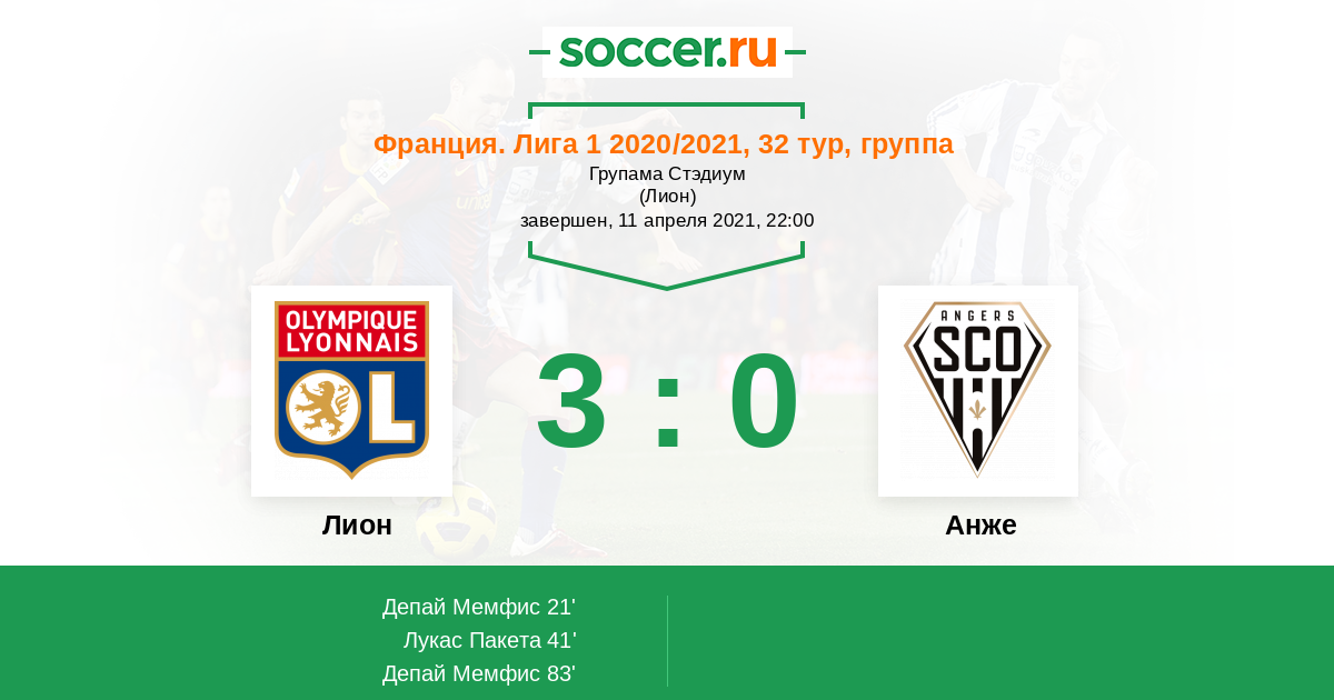 83' (3:0) Депай Мемфис (10) (Лукас Пакета (12))