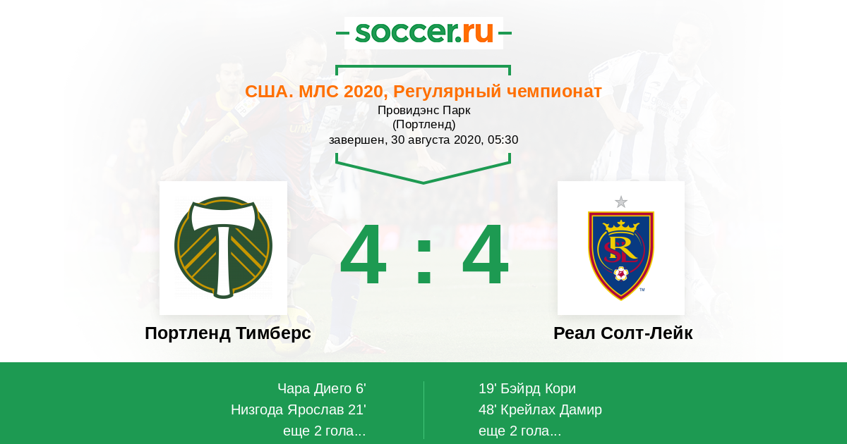 Протокол матча Портленд Тимберс против Реал Солт-Лейк
