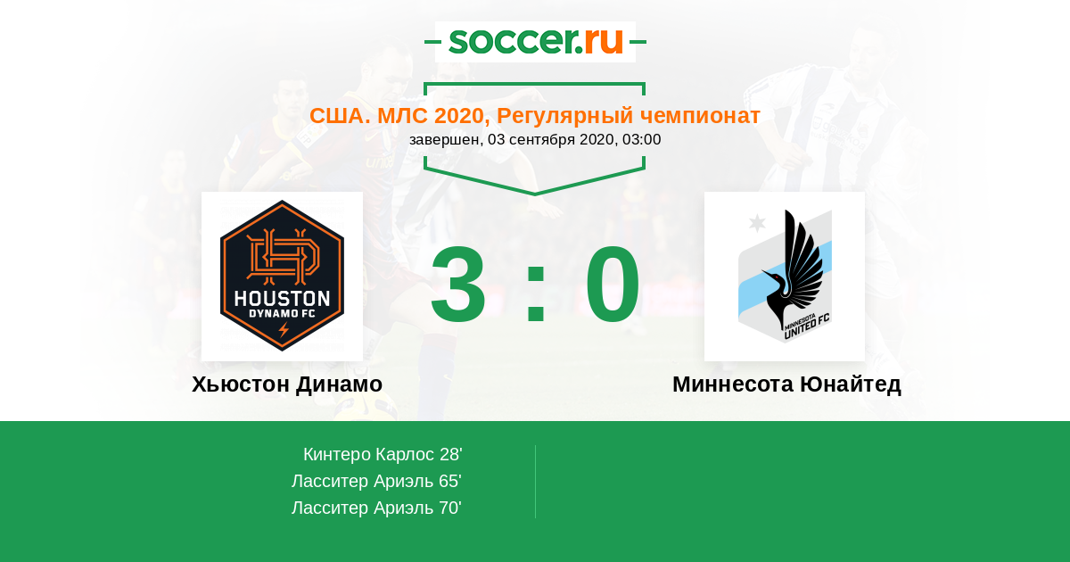 Протокол матча Хьюстон Динамо против Миннесота Юнайтед
