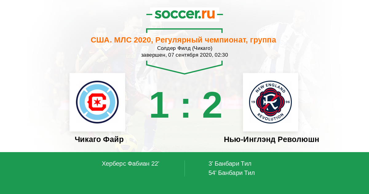 Протокол матча Чикаго Файр против Нью-Инглэнд Революшн