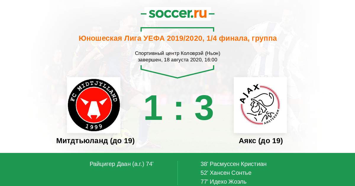 Протокол матча Митдтьюланд (до 19) против Аякс (до 19)