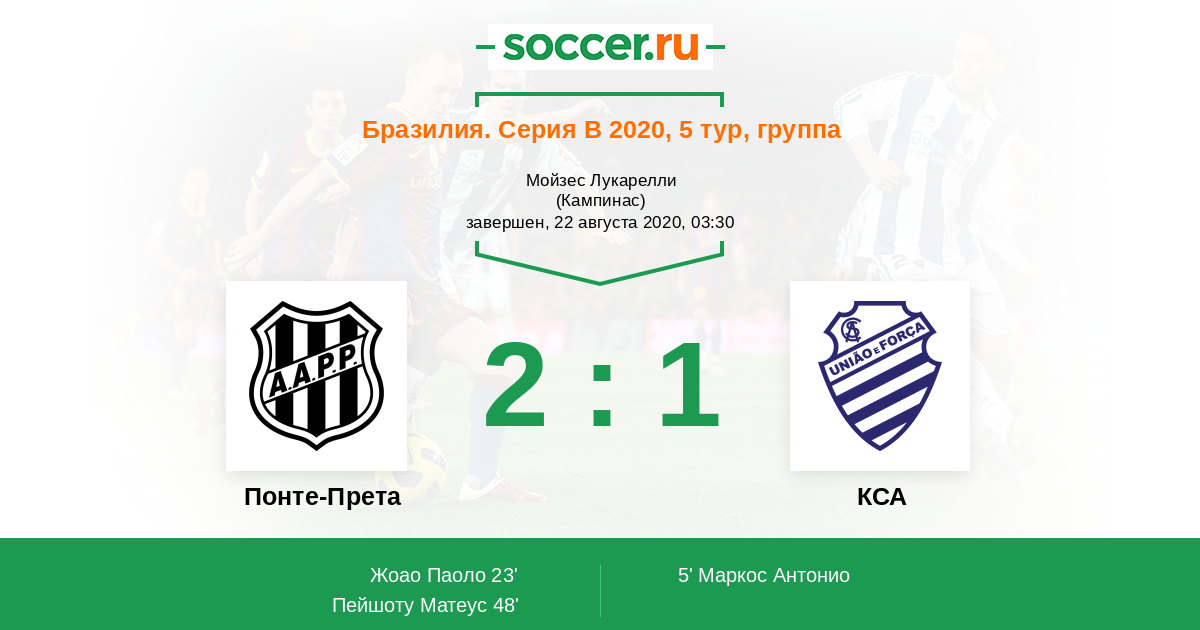 Протокол матча Понте-Прета против КСА