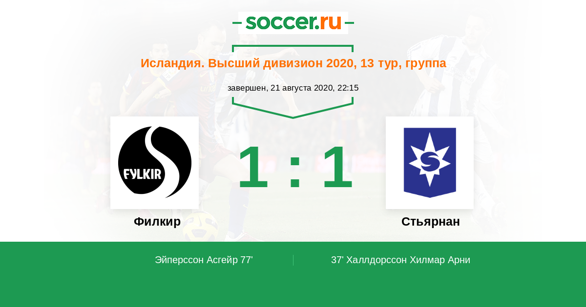 Протокол матча Филкир против Стьярнан