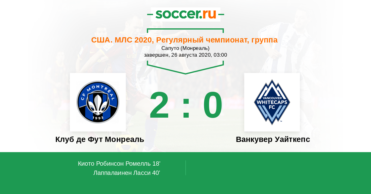 Протокол матча Клуб де Фут Монреаль против Ванкувер Уайткепс