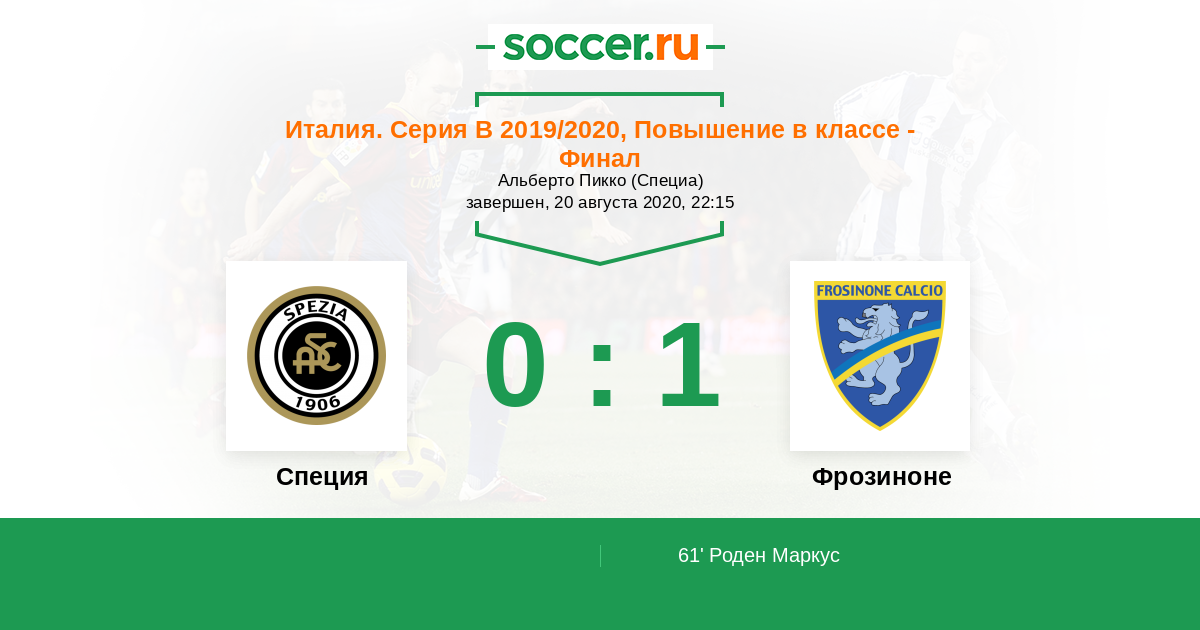 Протокол матча Специя против Фрозиноне