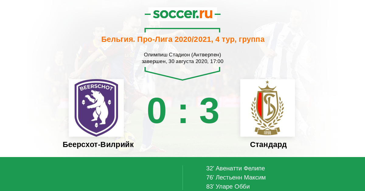 Протокол матча Беерсхот-Вилрийк против Стандард