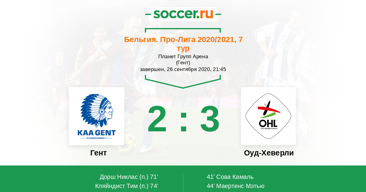 Протокол матча Гент против Оуд-Хеверли