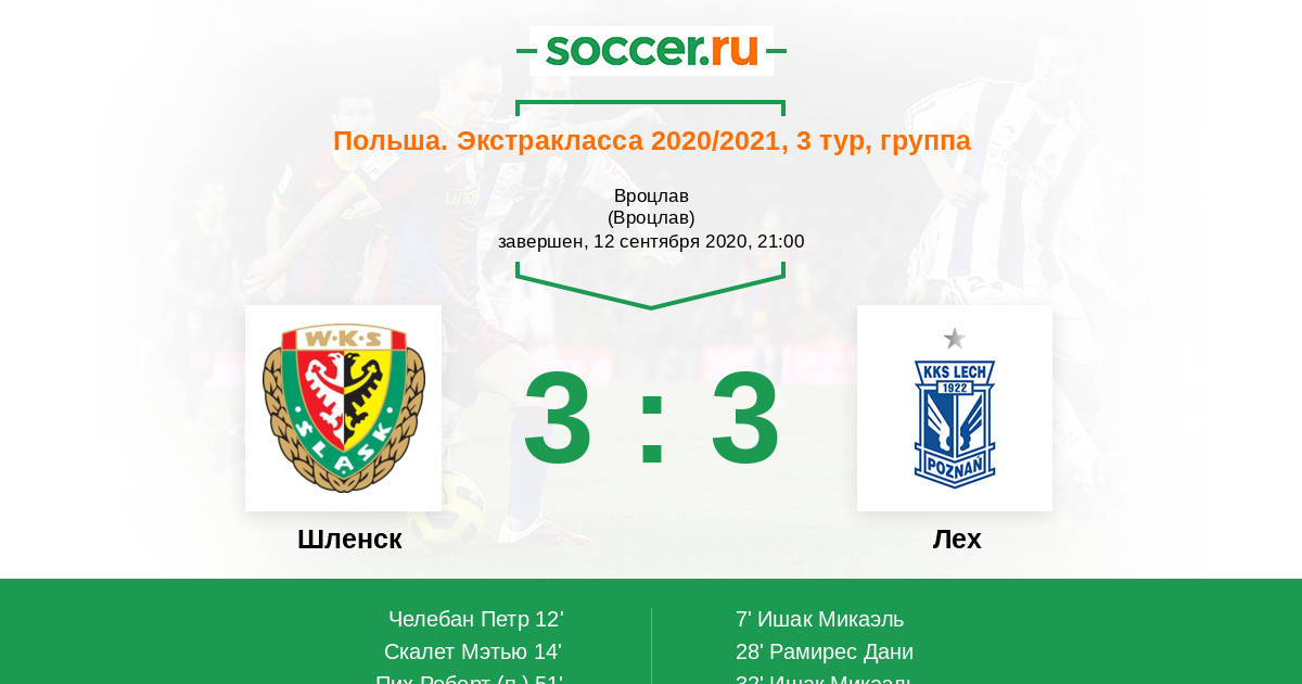 Протокол матча Шленск против Лех