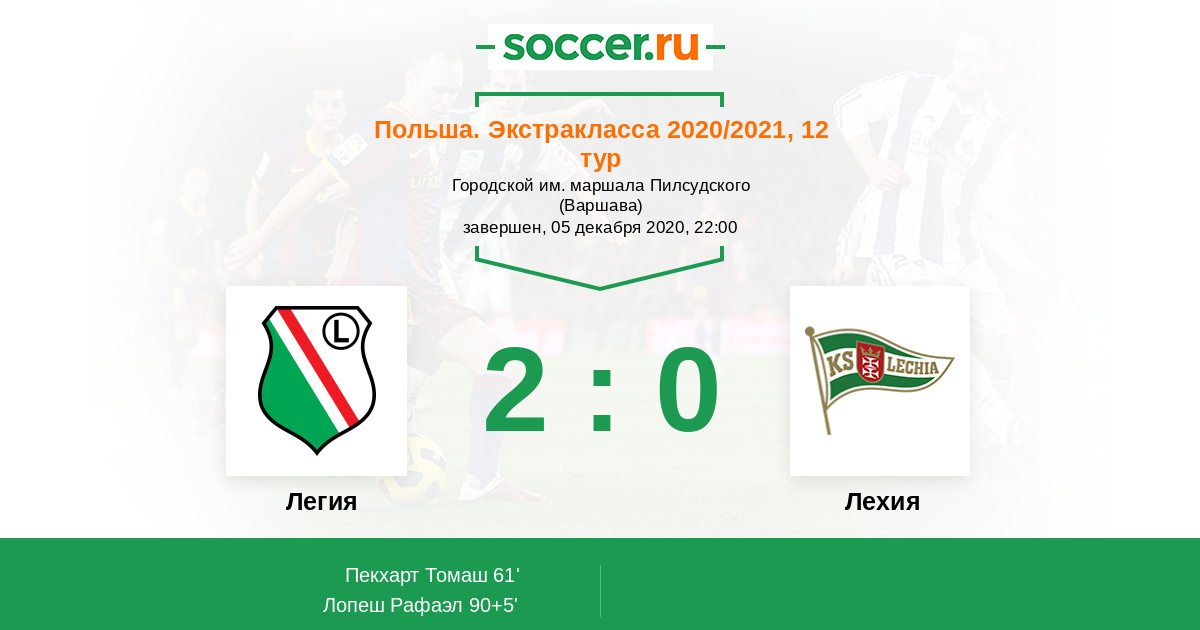 Протокол матча Легия против Лехия