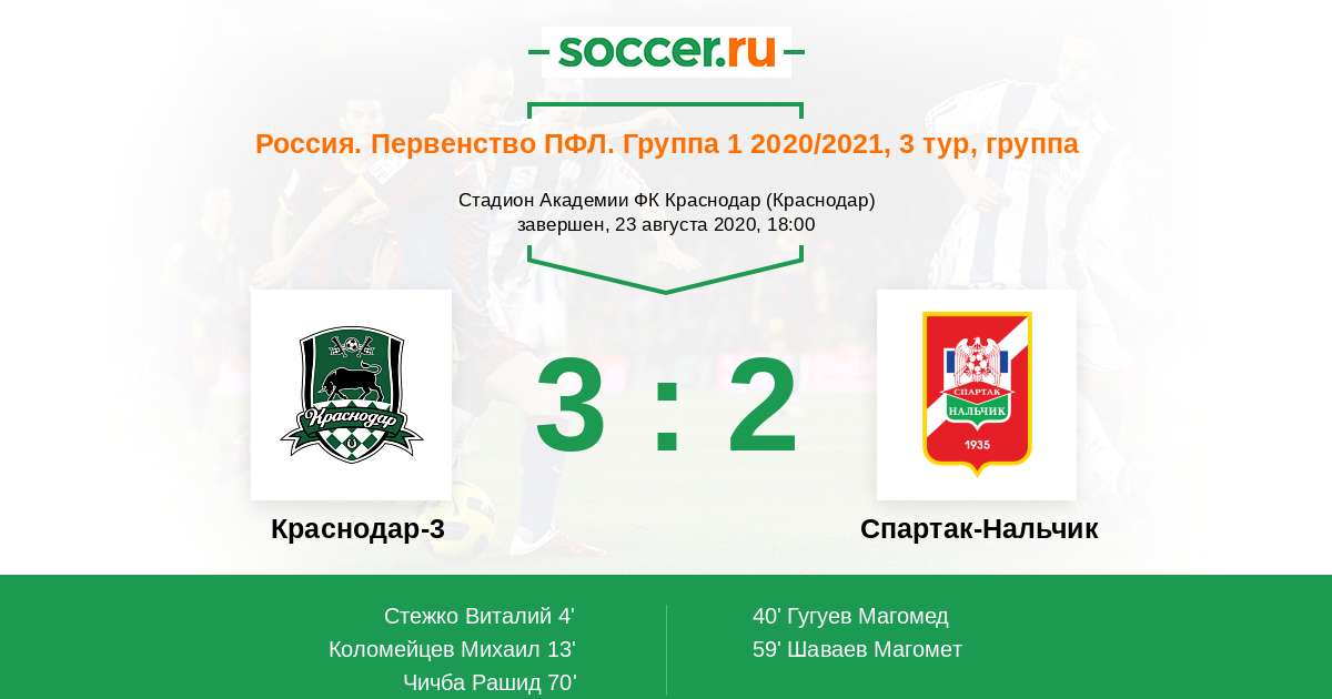 Протокол матча Краснодар-3 против Спартак-Нальчик