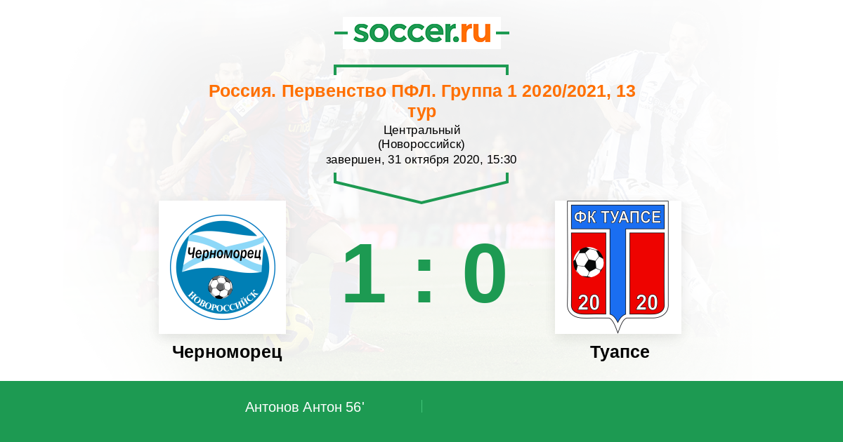 Протокол матча Черноморец против Туапсе