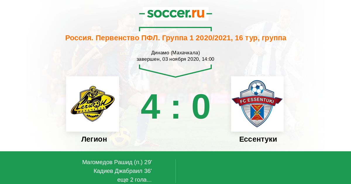 Протокол матча Легион против Ессентуки