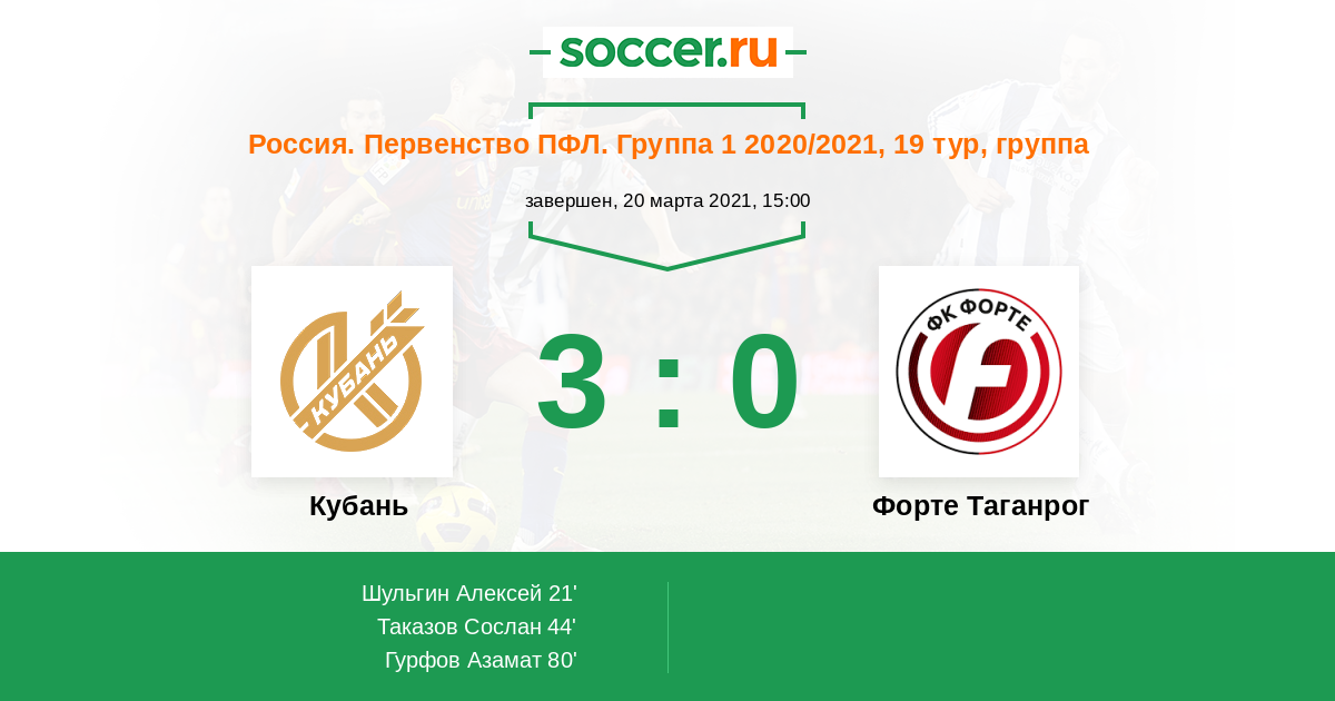 Протокол матча Кубань против Форте Таганрог