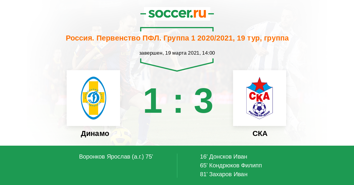 Протокол матча Динамо Ставрополь против СКА