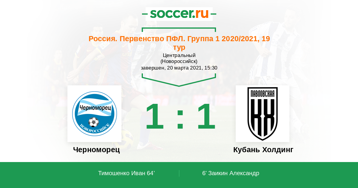 Протокол матча Черноморец против Кубань Холдинг